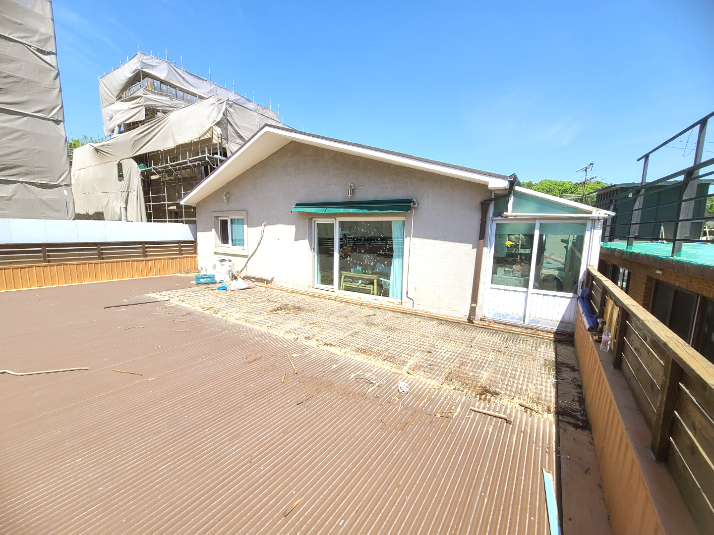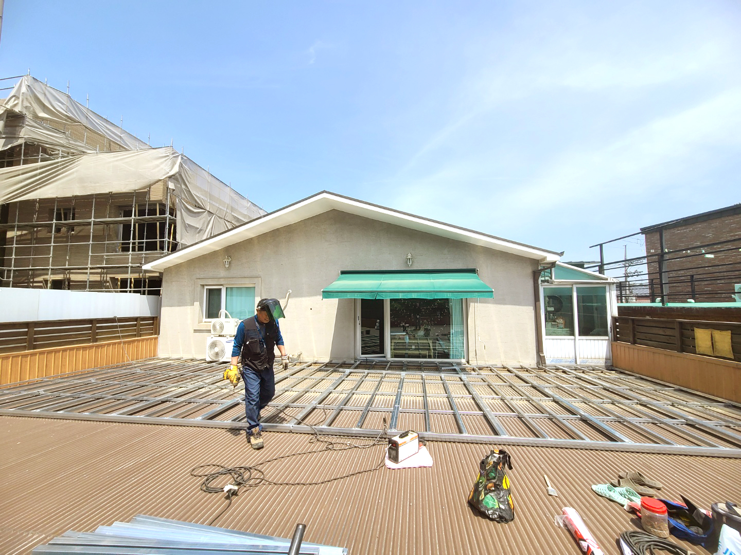 옥상의 오래된 나무데크를 교체해