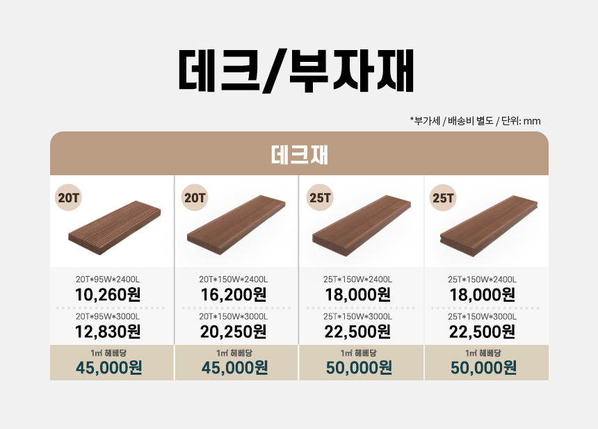 | 합성데크 정보 및 가격 | |