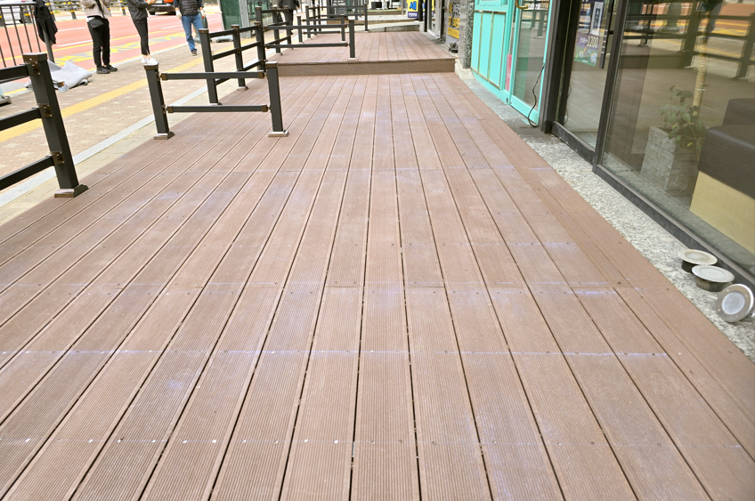 공장 직영의 합리적인 가격으로 설치까지! 건강한 주거환경과 자연경관에 잘 어울리는 친환경 합성목재입니다. 테라스 옥상 바닥 야외 데크 시공 목재입니다.