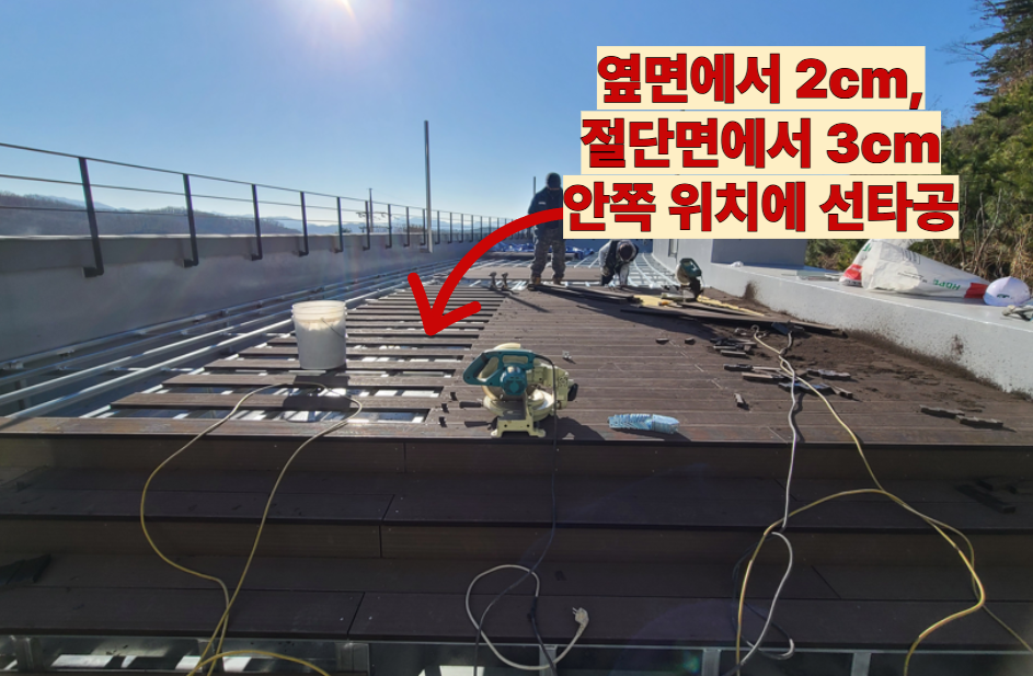 선타공을 하면서 생긴 데크의 잔재를