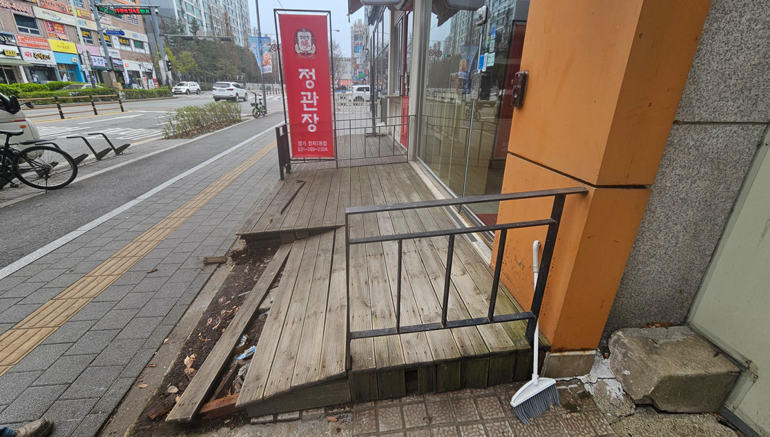 이번 현장은 상가 앞 바닥을 나무데크로