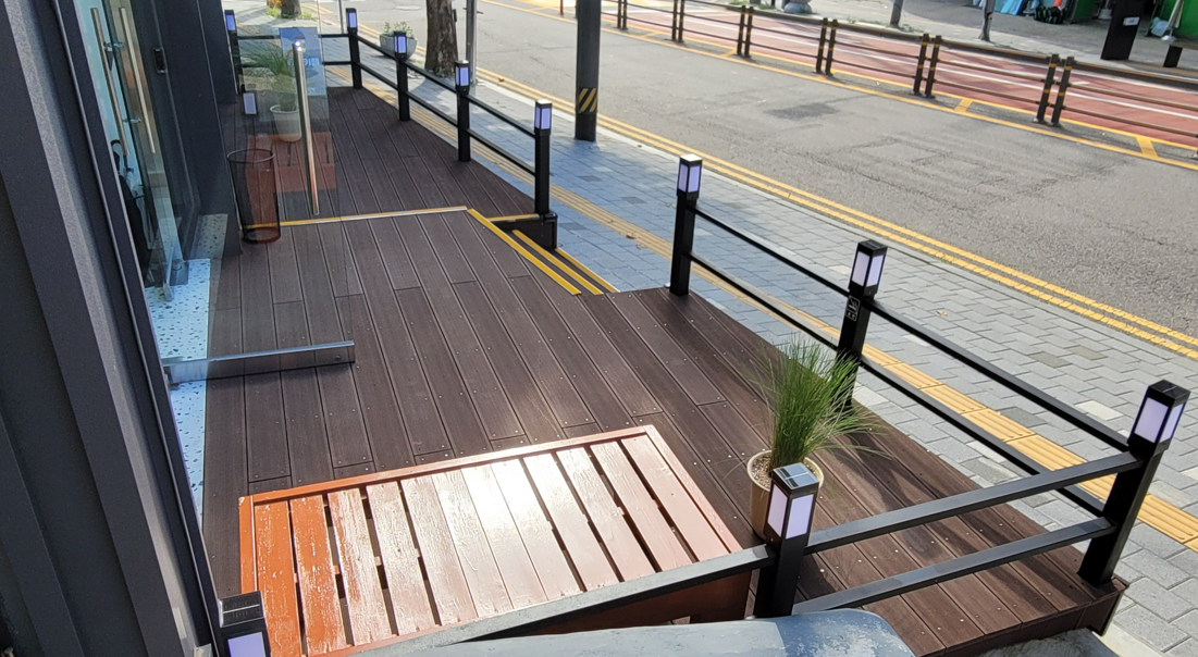 오늘은 카페 테라스에 합성목 데크를 시공한 사례를